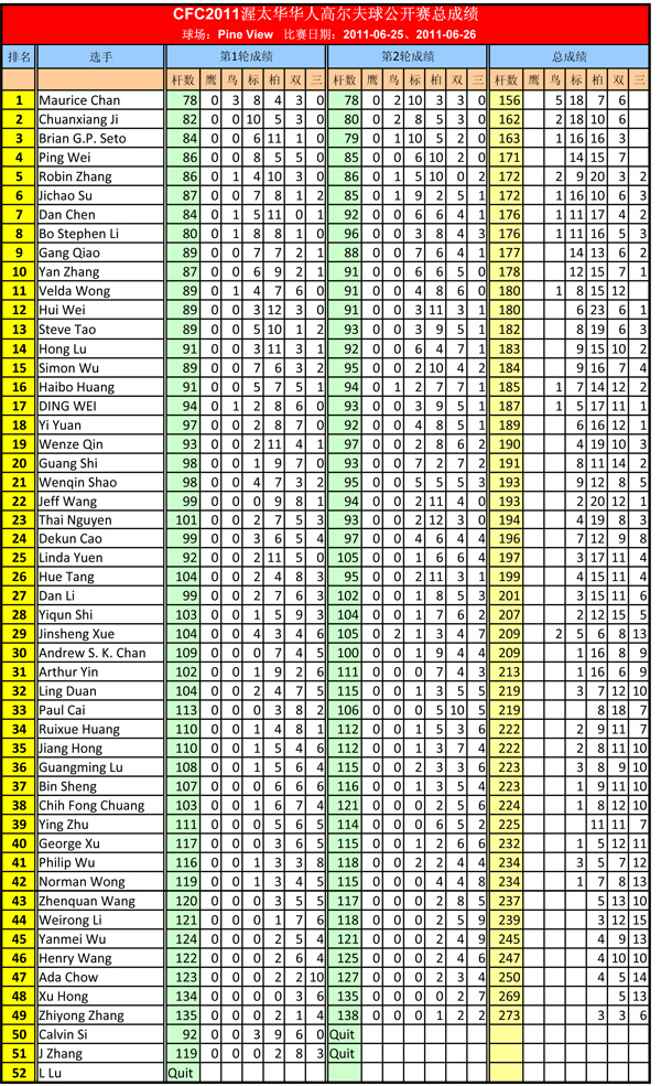 CFC2011渥太华华人高尔夫球公开赛圆满结束!完整成绩单