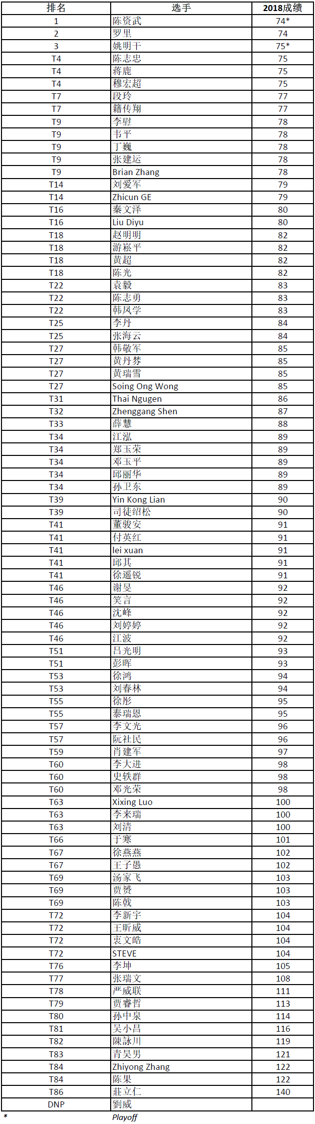 CFC 渥太华华人高尔夫球公开赛(2018)成绩单