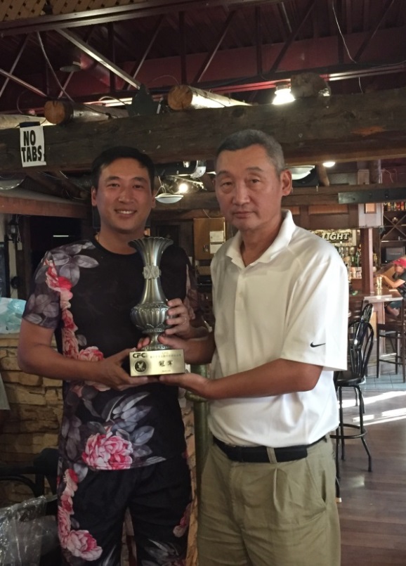 图片二: 渥太华华人高尔夫球协会主席穆宏超先生为获得冠军的张波颁奖