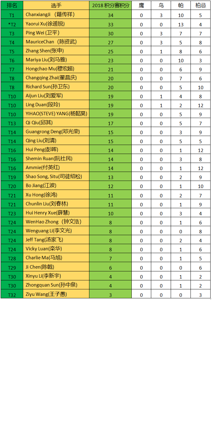 CFC2018渥太华华人高尔夫球优胜杯积分赛成绩单