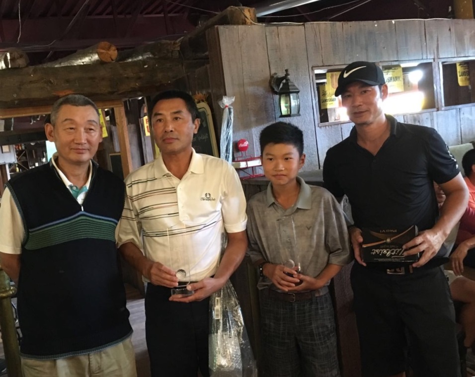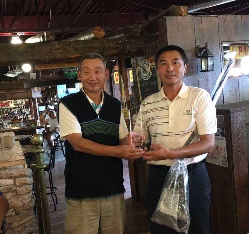 图片一: 渥太华华人高尔夫球协会主席穆宏超先生为获得冠军的籍传翔颁奖