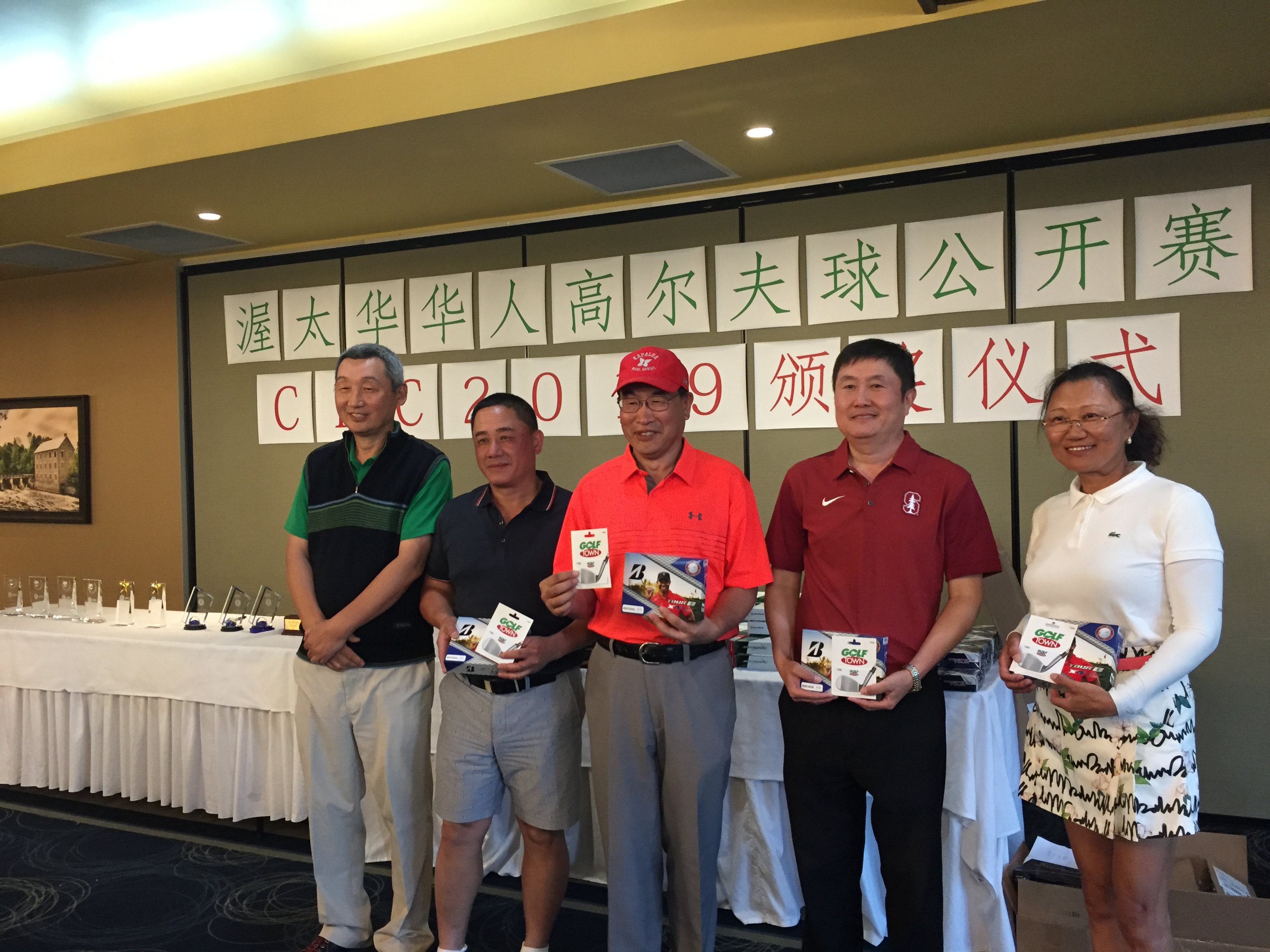 颁奖晚会在GreyHawk Golf Club餐厅举行。CFC总裁张瑞文先生,一杆进洞大奖赞助商Otto's Group 旗下的Otto's Subaru销售总经理Bryan Zhang先生,陈氏河粉东主陈资武先生,Sun Life Financial 代表刘春林先生,Coco Auto Service 付英红女士,TD贷款专家姚瑶女士,薛氏理财薛金生先生等赞助商为获奖选手颁发了奖杯和奖品。渥太华华人高尔夫球协会主席穆宏超先生和协会理事秦文泽、张建运、段玲和彭晖分别与嘉宾一起为获奖选手抽奖和颁奖。本年度奖品丰厚,颁奖晚宴现场气氛热烈,在场所有选手都抽到了奖品,人手一份,包括果岭劵,高尔夫球和用品等。