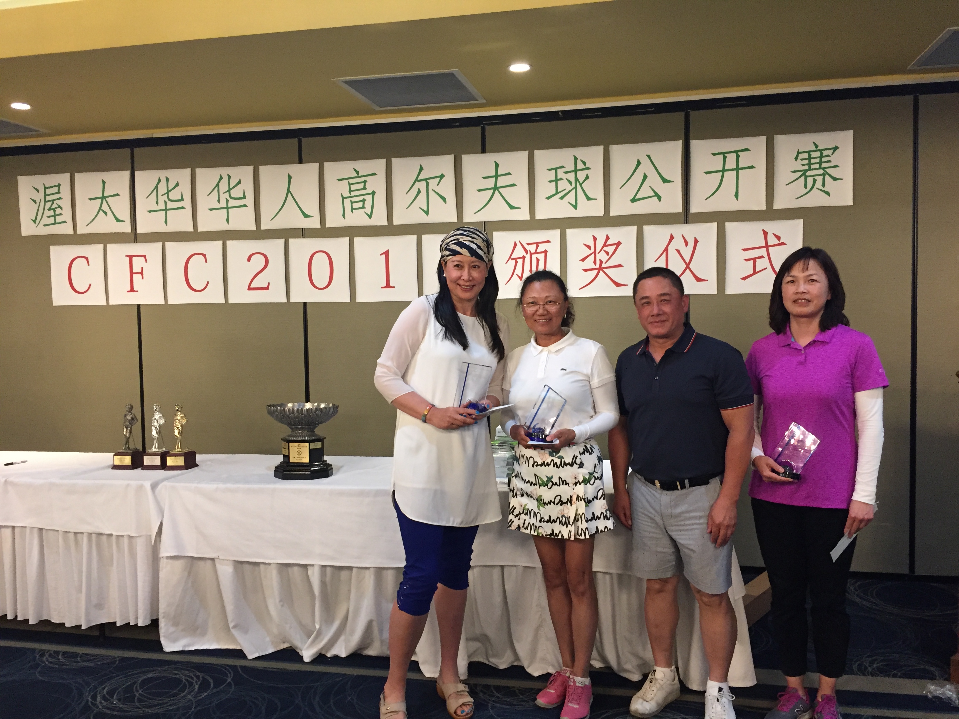 图片三:赞助商陈资武先生和女子获奖选手段玲,葛志存,黄瑞雪女士合影。